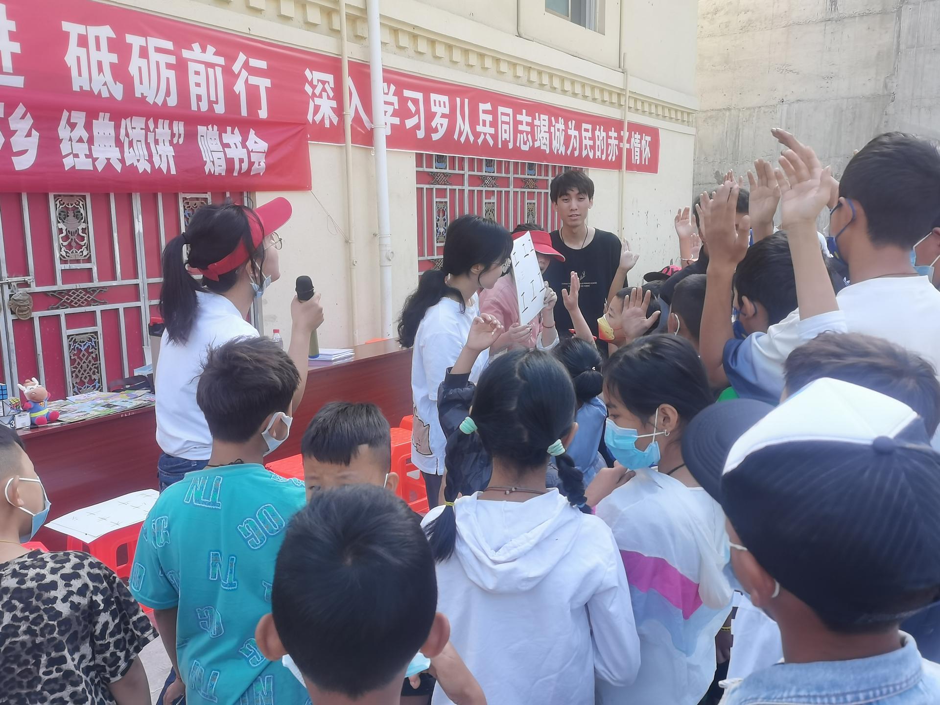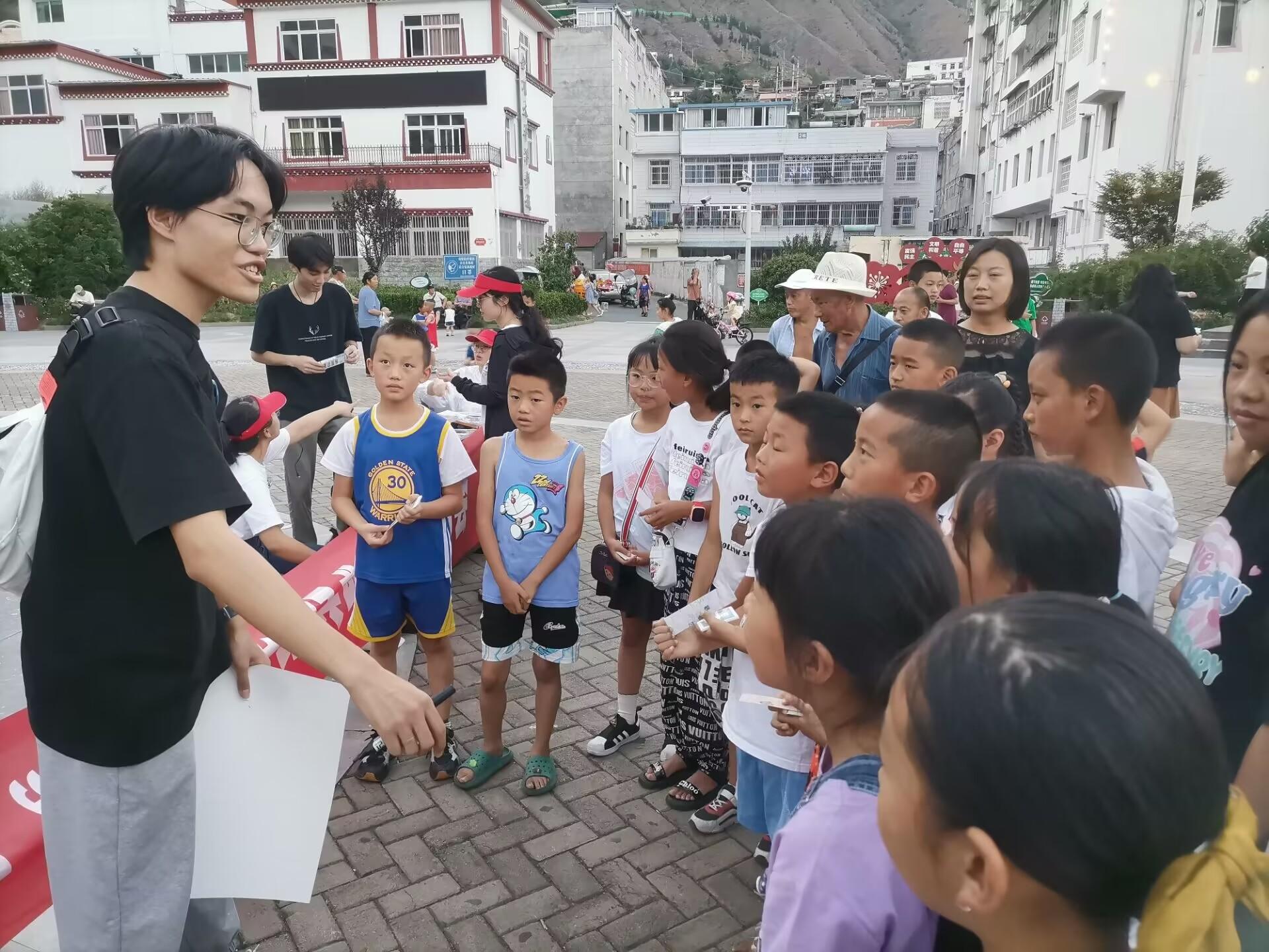讲述经典故事,写好规范文字。经过多次演练,团队成员分别于8月21日下午19:00和8月24日上午9:00在金川县的勒乌镇和观音桥镇的文化广场开展“送教下乡,经典诵读”赠书会。此次赠书会活动坚持以诵读为基础、以阅读为保证,在读中升华,在读中受教。活动现场,家长和孩子们热情高涨,踊跃参与,并表示非常期待未来可以有更多机会参与此类文化活动。